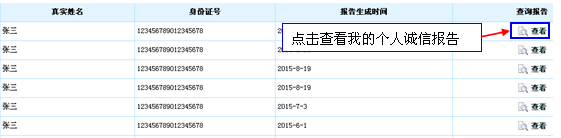 我的个人诚信报告:点击查看我的个人诚信报告信息